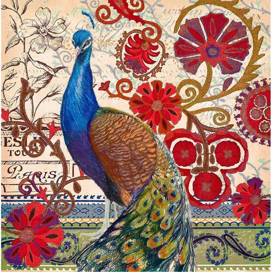 Peacock Decore II Gold Ornate Wood Framed Art Print with Double Matting by Art Licensing Studio