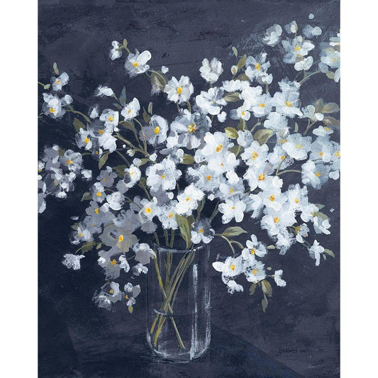 Fresh White Bouquet Indigo Crop Gold Ornate Wood Framed Art Print with Double Matting by Nai, Danhui