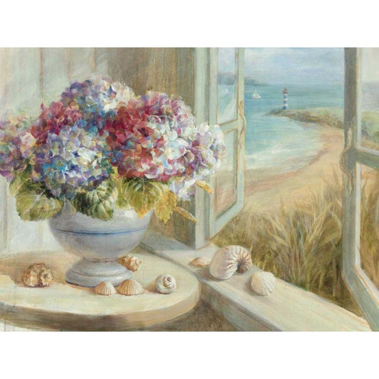 Coastal Hydrangea Gold Ornate Wood Framed Art Print with Double Matting by Nai, Danhui