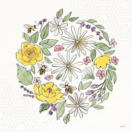 Honeybee Blossoms XI No Words Gold Ornate Wood Framed Art Print with Double Matting by Tavoletti, Anne
