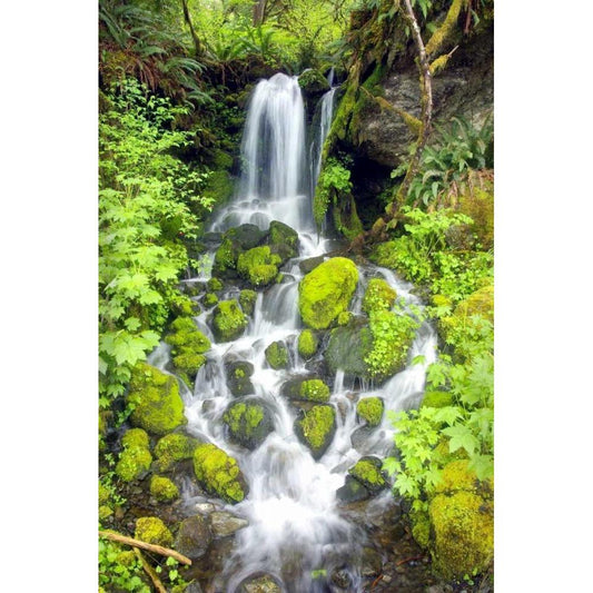 Wahkeena Falls Gold Ornate Wood Framed Art Print with Double Matting by Taylor, Douglas