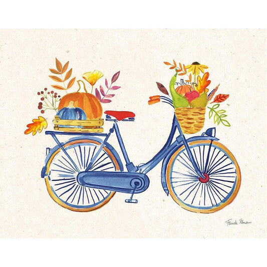 Autumn Harvest I Navy Gold Ornate Wood Framed Art Print with Double Matting by Zaman, Farida