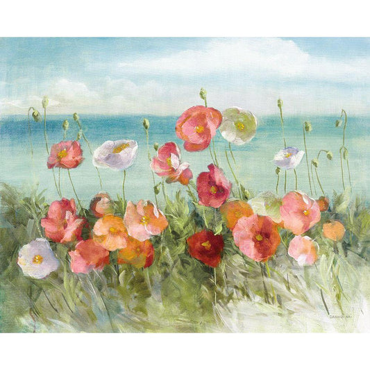 Coastal Poppies Light. Gold Ornate Wood Framed Art Print with Double Matting by Nai, Danhui