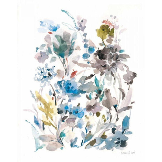 Breezy Florals II Colorful Gold Ornate Wood Framed Art Print with Double Matting by Nai, Danhui