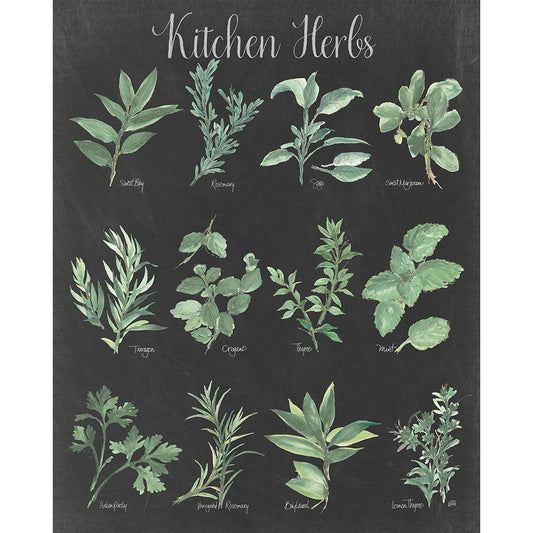 Kitchen Herb Chart on Black II Gold Ornate Wood Framed Art Print with Double Matting by Paschke, Chris