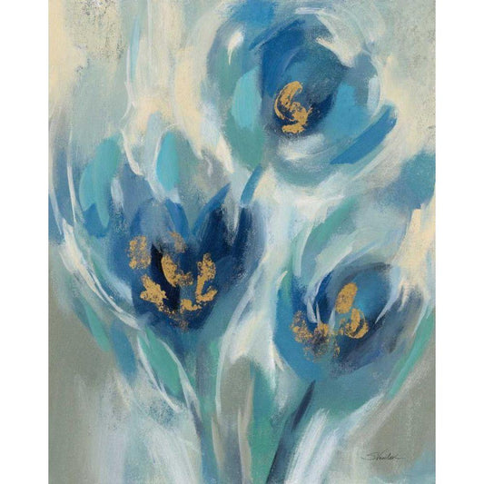 Blue Fairy Tale Floral I Gold Ornate Wood Framed Art Print with Double Matting by Vassileva, Silvia