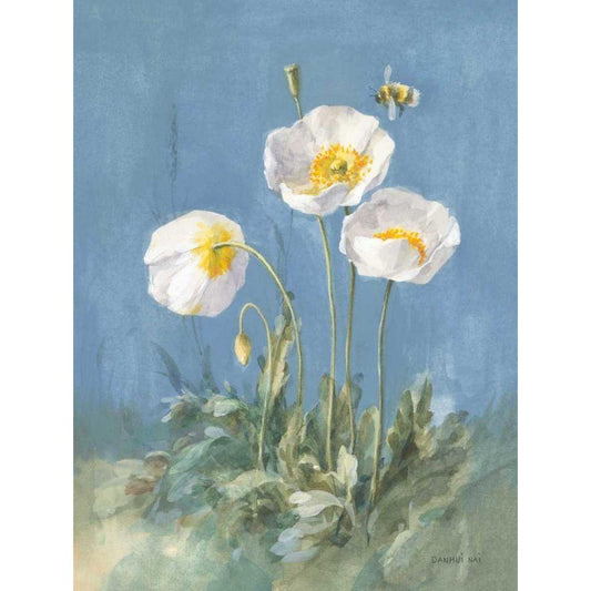 White Poppies II Gold Ornate Wood Framed Art Print with Double Matting by Nai, Danhui