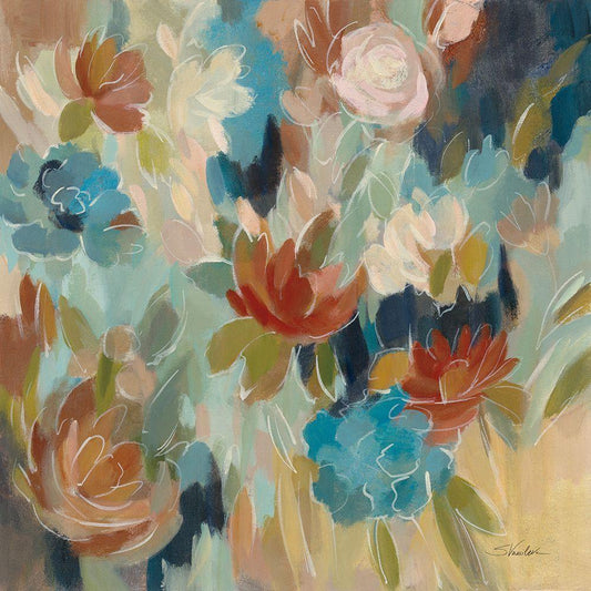Blue and Sienna Floral Gold Ornate Wood Framed Art Print with Double Matting by Vassileva, Silvia