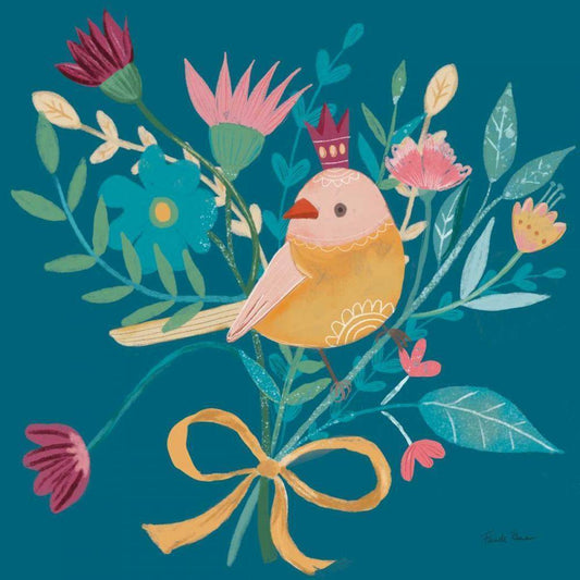 Royal Birds I White Gold Ornate Wood Framed Art Print with Double Matting by Zaman, Farida