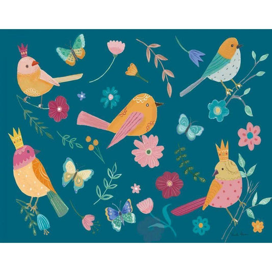 Royal Birds II Blue Gold Ornate Wood Framed Art Print with Double Matting by Zaman, Farida
