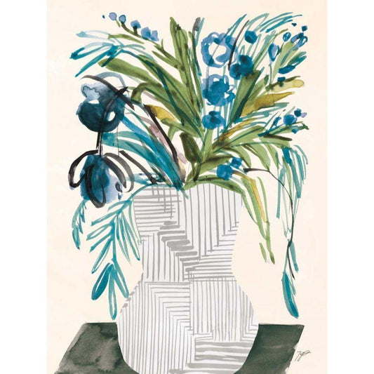 Tribal Still Life Blue Gold Ornate Wood Framed Art Print with Double Matting by Mack, Lynn