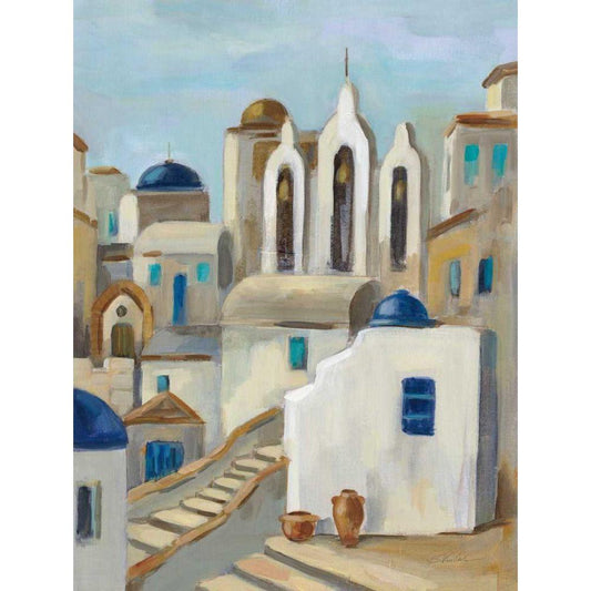 Santorini View III Gold Ornate Wood Framed Art Print with Double Matting by Vassileva, Silvia