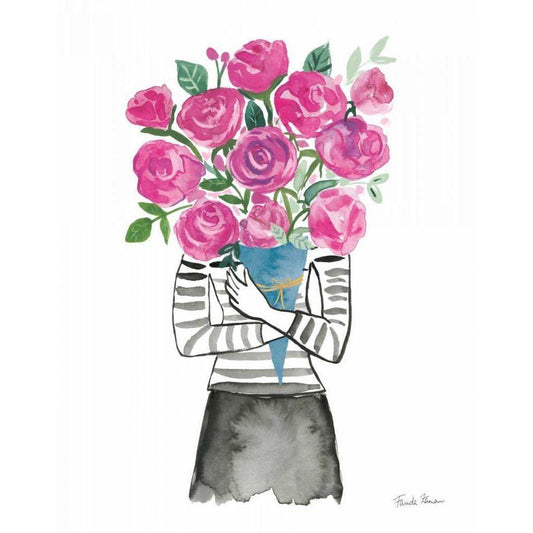 Roses are Pink Gold Ornate Wood Framed Art Print with Double Matting by Zaman, Farida
