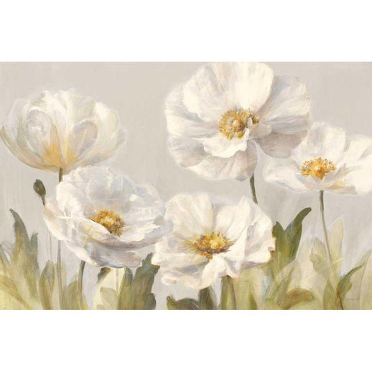 White Anemones Gold Ornate Wood Framed Art Print with Double Matting by Nai, Danhui