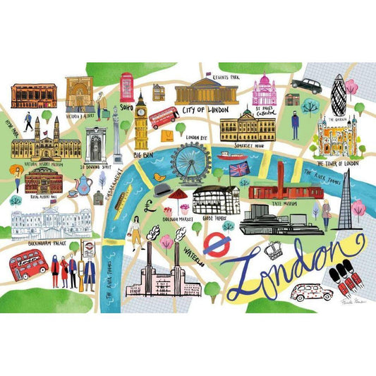 London Map Gold Ornate Wood Framed Art Print with Double Matting by Zaman, Farida