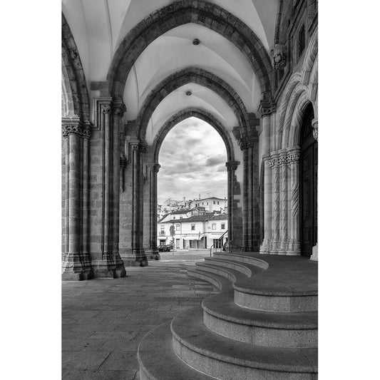 Evora Cathedral BW Gold Ornate Wood Framed Art Print with Double Matting by Hellmann, Stan
