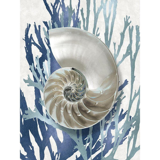 Shell Coral Aqua Blue II Gold Ornate Wood Framed Art Print with Double Matting by Kelly, Caroline