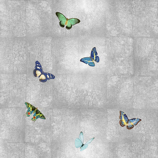 Butterflies on Silver II Gold Ornate Wood Framed Art Print with Double Matting by Blake, Madeline