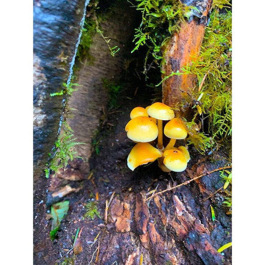 Tiny Mushroom Cluster I Gold Ornate Wood Framed Art Print with Double Matting by Grayscale