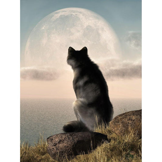 Wolf Watching The Moonrise Gold Ornate Wood Framed Art Print with Double Matting by Eskridge, Daniel