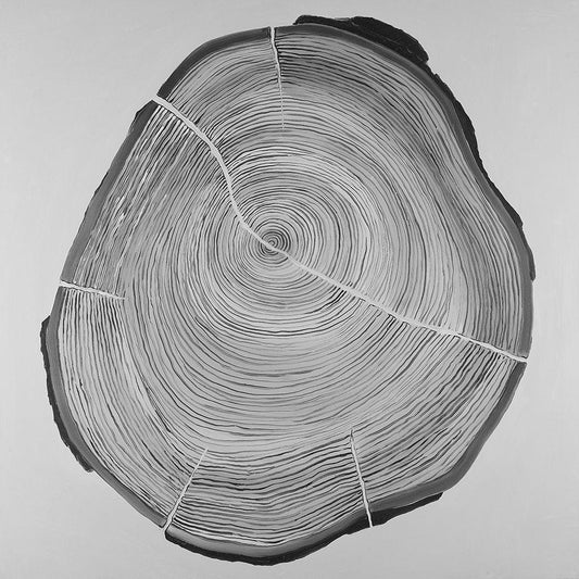 Grayscale Oval Shaped Tree Slab Gold Ornate Wood Framed Art Print with Double Matting by Atelier B Art Studio