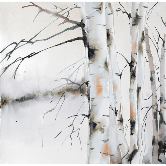 WHITE BIRCHES ON GRAY BACKGROUND Gold Ornate Wood Framed Art Print with Double Matting by Atelier B Art Studio