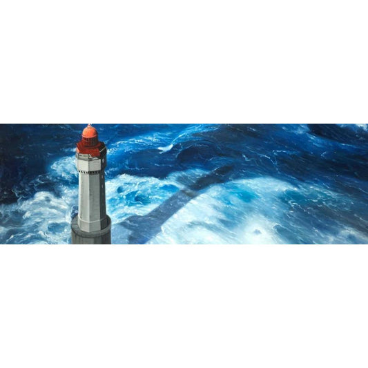 Surfing Waves on a Lighthouse Gold Ornate Wood Framed Art Print with Double Matting by Atelier B Art Studio