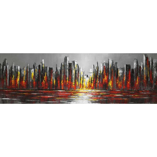 Abstract Red Skyline Gold Ornate Wood Framed Art Print with Double Matting by Atelier B Art Studio