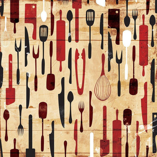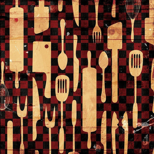 Utensils On The Wall Gold Ornate Wood Framed Art Print with Double Matting by Grey, Jace