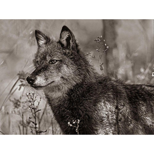 Gray wolf Sepia Gold Ornate Wood Framed Art Print with Double Matting by Fitzharris, Tim