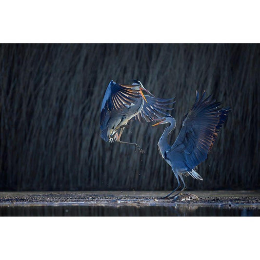 Grey heron Gold Ornate Wood Framed Art Print with Double Matting by Chang, Phillip
