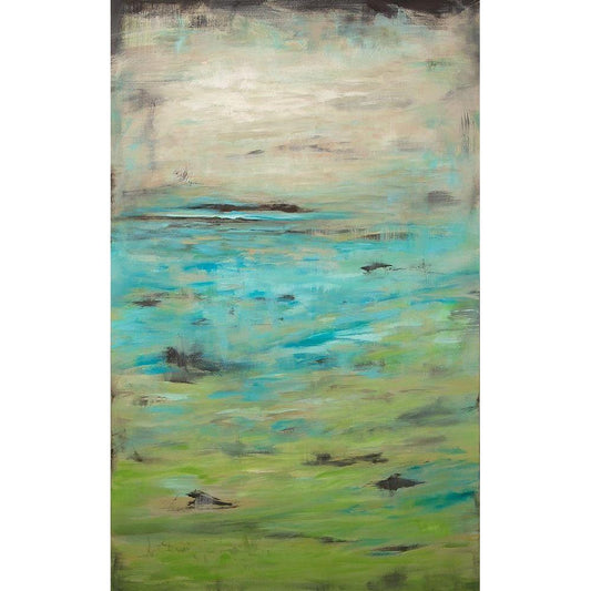 Abstract Seascape Gold Ornate Wood Framed Art Print with Double Matting by Hinz