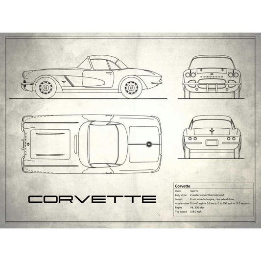 Corvette 33BHP White Gold Ornate Wood Framed Art Print with Double Matting by Rogan, Mark