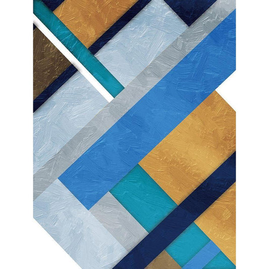 Stipe Overlay Mate Blue Gold Ornate Wood Framed Art Print with Double Matting by Grey, Jace