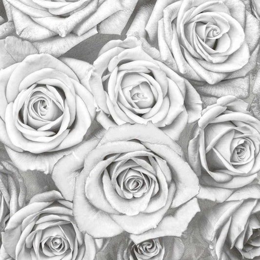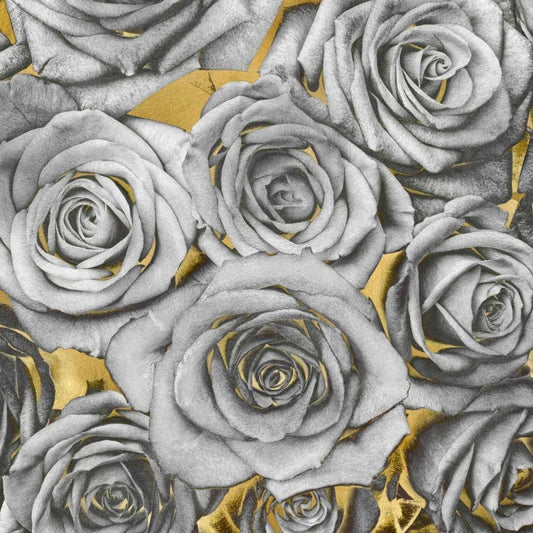 Roses - Silver on Gold Gold Ornate Wood Framed Art Print with Double Matting by Bennett, Kate