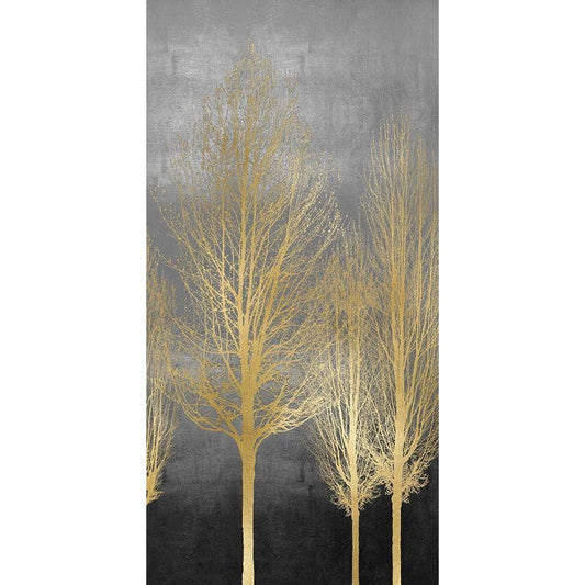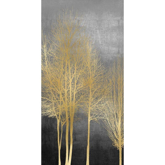 Gold Trees on Gray Panel I Gold Ornate Wood Framed Art Print with Double Matting by Bennett, Kate
