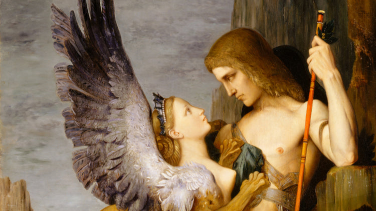 Oedipus and the Sphinx White Modern Wood Framed Art Print with Double Matting by Moreau, Gustave