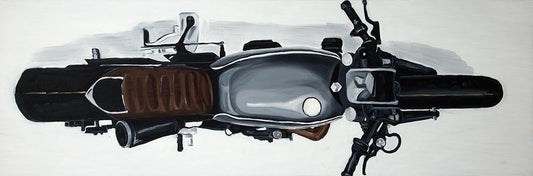 OVERHEAD VIEW OF A MOTORBIKE White Modern Wood Framed Art Print with Double Matting by Atelier B Art Studio