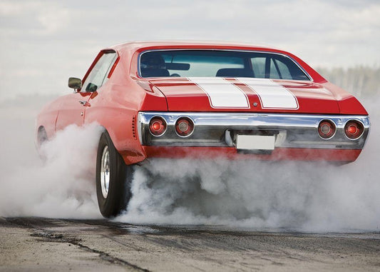 ITALIAN RED AND WHITE CAR White Modern Wood Framed Art Print with Double Matting by Atelier B Art Studio