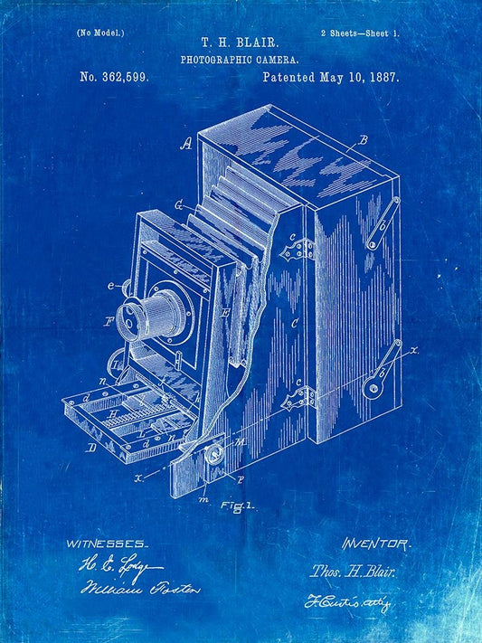 PP301-Faded Blueprint Lucidograph Camera Patent Poster Black Ornate Wood Framed Art Print with Double Matting by Borders, Cole