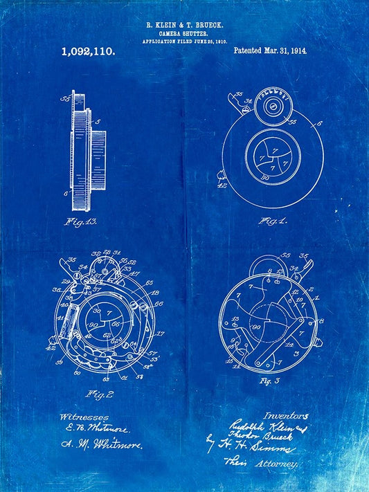 PP707-Faded Blueprint Asbury Frictionless Camera Shutter Patent Poster Black Ornate Wood Framed Art Print with Double Matting by Borders, Cole