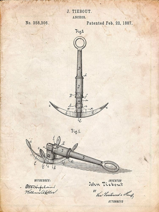 PP745-Vintage Parchment Boat Anchor Patent Poster Black Ornate Wood Framed Art Print with Double Matting by Borders, Cole