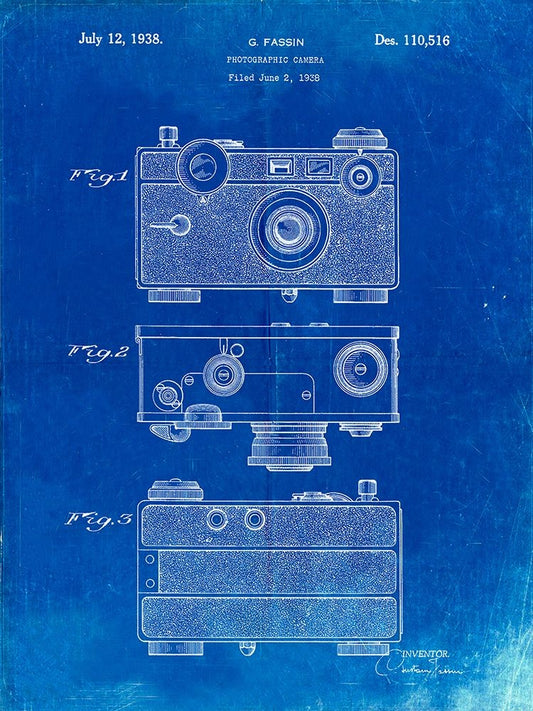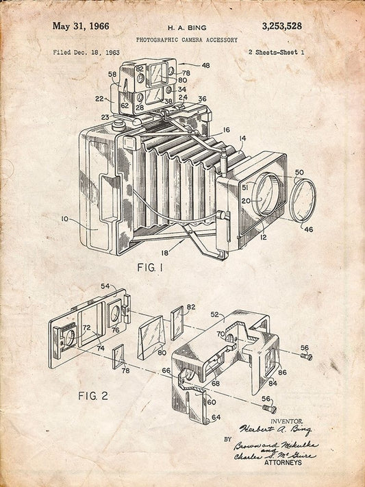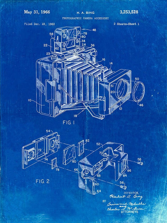 PP34-Faded Blueprint 1966 Camera Accessory Poster Black Ornate Wood Framed Art Print with Double Matting by Borders, Cole