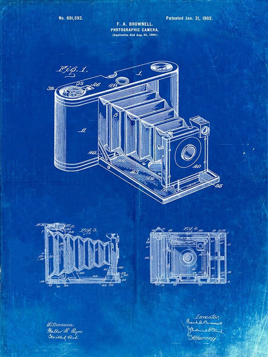 PP33-Faded Blueprint Iconic Photographic Camera 1885 Patent Poster Black Ornate Wood Framed Art Print with Double Matting by Borders, Cole