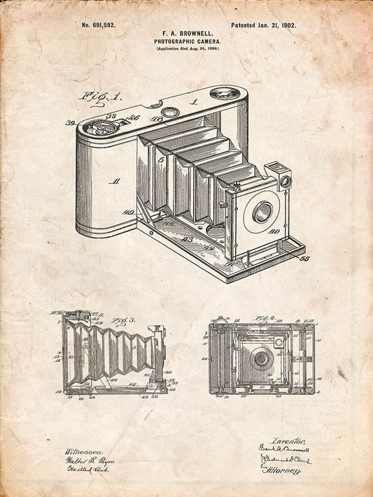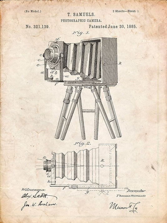 PP33-Vintage Parchment Iconic Photographic Camera 1885 Patent Poster Black Ornate Wood Framed Art Print with Double Matting by Borders, Cole
