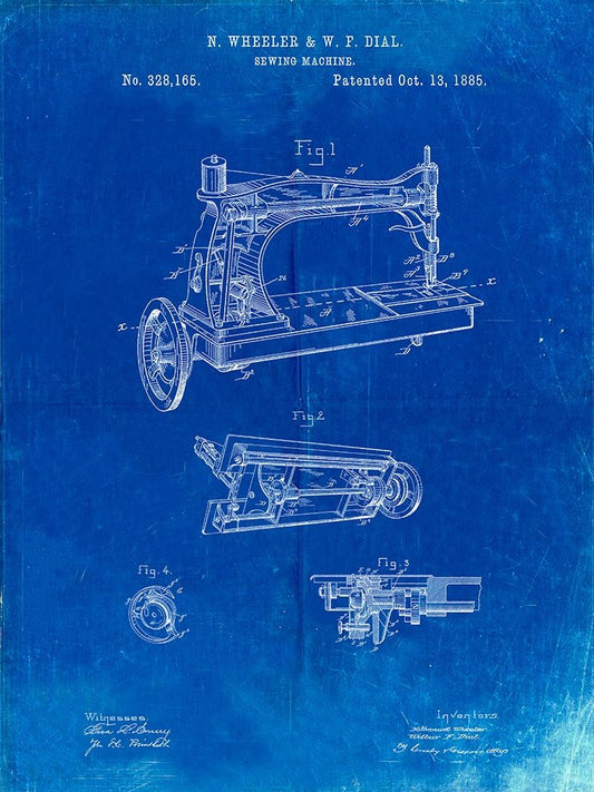 PP37-Faded Blueprint Wheeler And Wilson Sewing Machine Patent Poster Black Ornate Wood Framed Art Print with Double Matting by Borders, Cole
