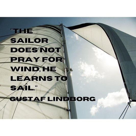 Gustaf Lindborg Quote: He Learns to Sail Black Modern Wood Framed Art Print with Double Matting by ArtsyQuotes