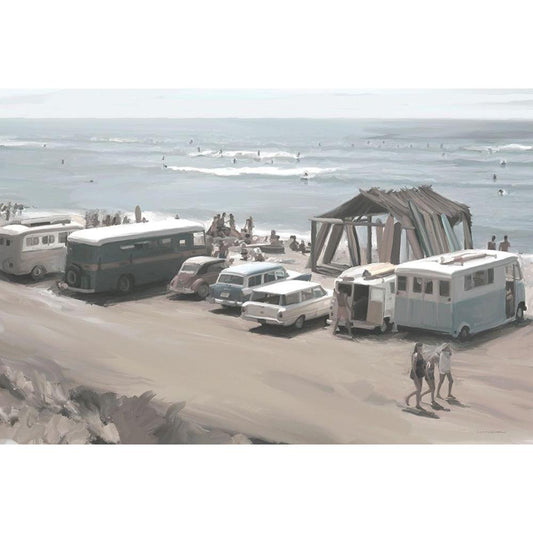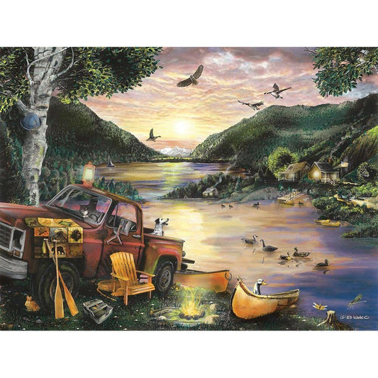 Lakefront Camping I Black Modern Wood Framed Art Print with Double Matting by Wargo, Ed