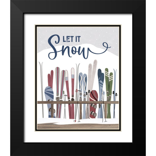 Winter Mountain Getaway portrait V-Let it Snow Black Modern Wood Framed Art Print with Double Matting by Tara Reed