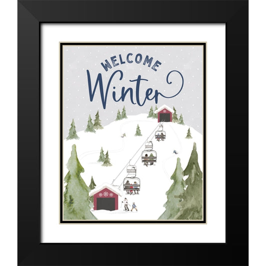 Winter Mountain Getaway portrait VI-Welcome Winter Black Modern Wood Framed Art Print with Double Matting by Tara Reed